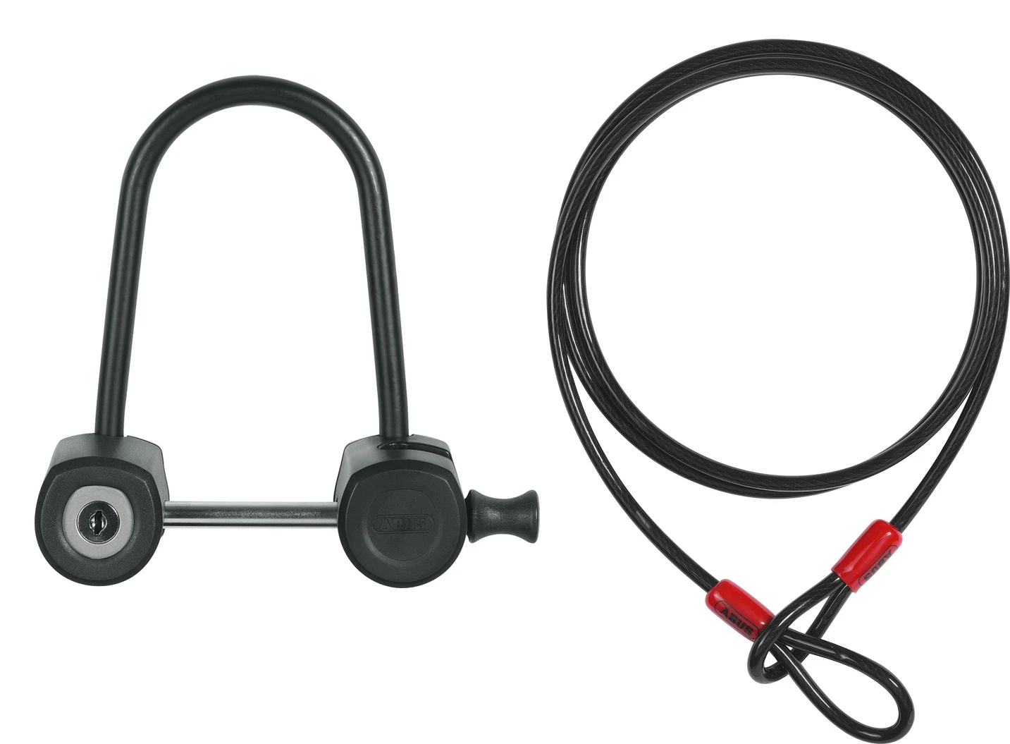 Det ekstra kabel bruges til at låse cyklen fast til eksempelvis en lygtepæl, et skilt og lignende. Dette kabel er af mærket Abus.