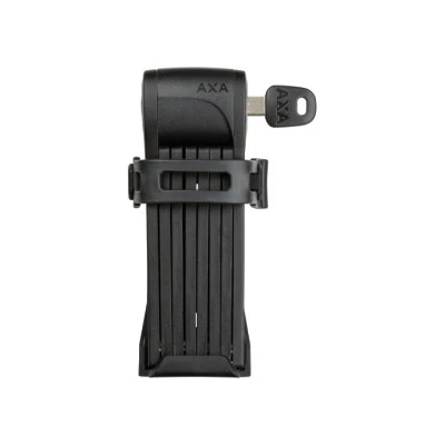 Foldelås fra AXA med holder til montering på stel. Låsen har en længde på 80 cm. og betjenes med nøgle.