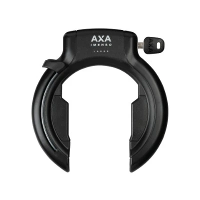 Imenso ringlås fra AXA. Med ekstra bred åbning på 92 mm. så den også passer til brede dæk samt skærme.