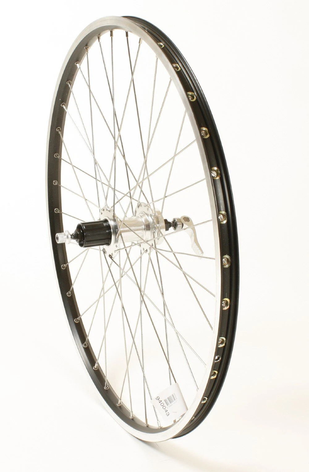 Sort aluminiums fælg og nav med quick release (QR).