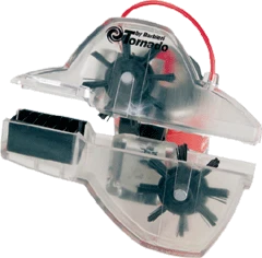Med to roterende børster til inde rengøring og gummielameller til side rengøring af kæden.