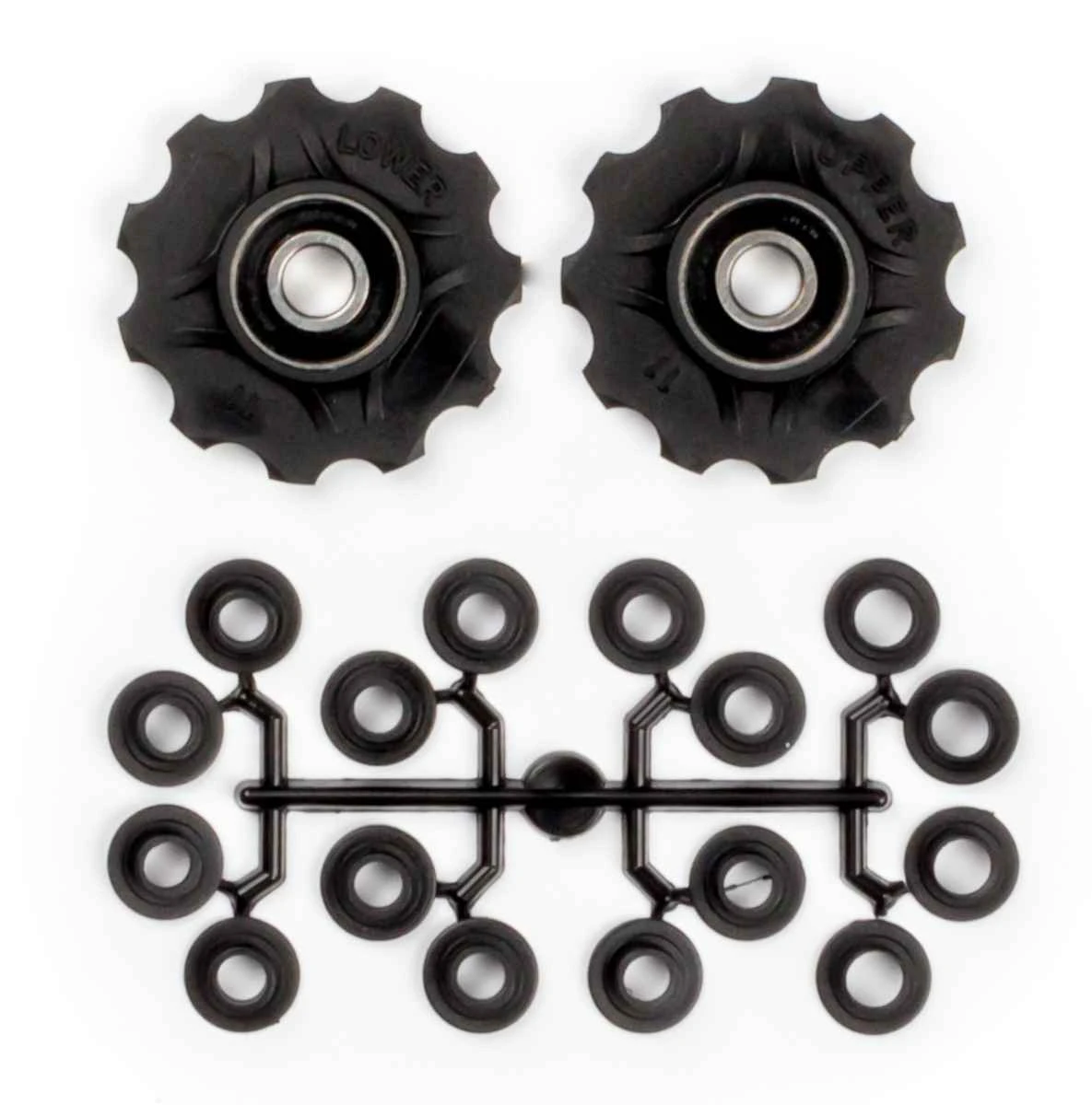 11T pulleyhjul med lukkede lejer og spacere så de passer til felere forskellige bagskiftere.