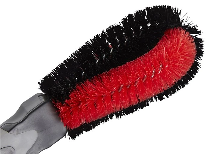 Børsten er medium stiv og perfekt til mudder og andet der kan findes på dine dæk og fælge.