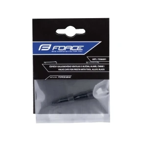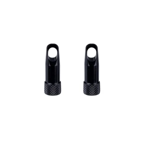 Sort ventilhætte i alu. med værktøj til afmontering af ventilkegle.