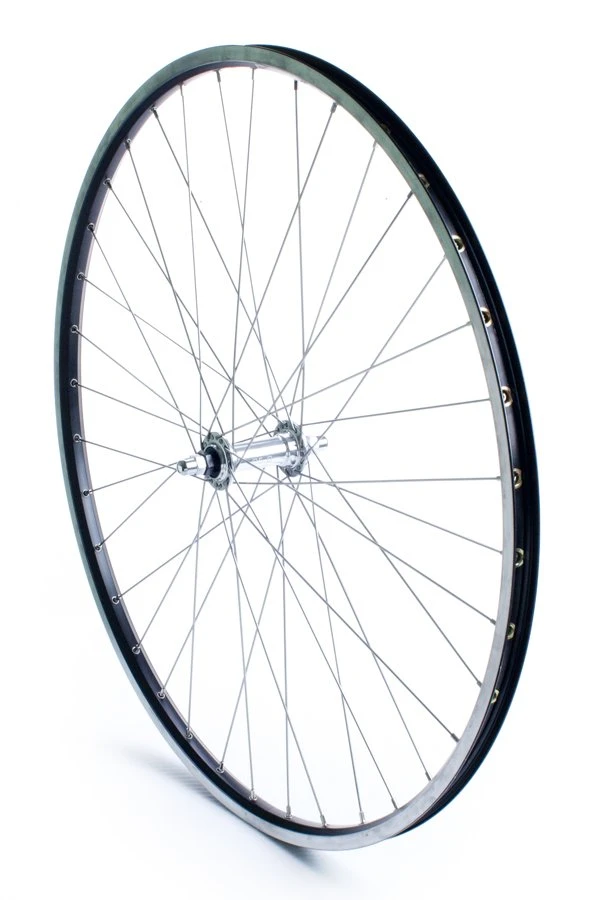 Nav i blank aluminium og med 36 stk. rustfri stål eger 2 mm tykkelse. Hjulet er med møttrik bespænding.