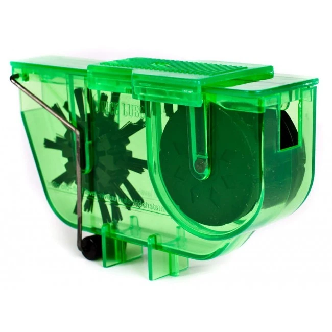Juice Lubes Dirty Little Scrubber er en kæderenser der skrubber kæden på alle 4 sider og dermed nemt hurtigt og effektivt renser kæder. Dette forlænger levetiden på kæden og minimerer slid på hele drivlinen.