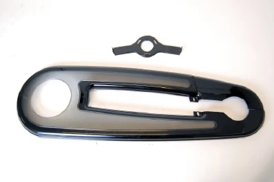 Skærmen er sort med midterste stykke, i smoke (halvklar).