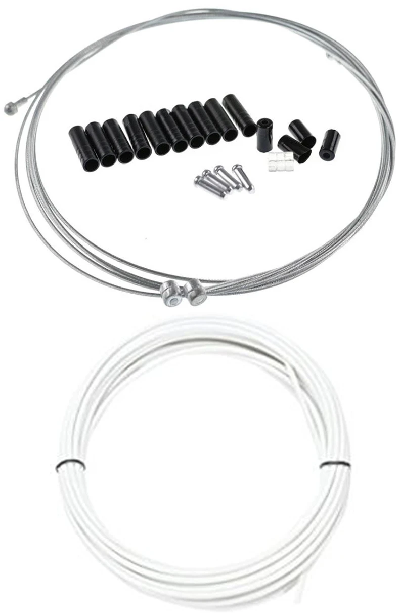 Komplet hvidt kabelsæt med alt til både gear (forskifter og bagskifter) samt begge bremser.