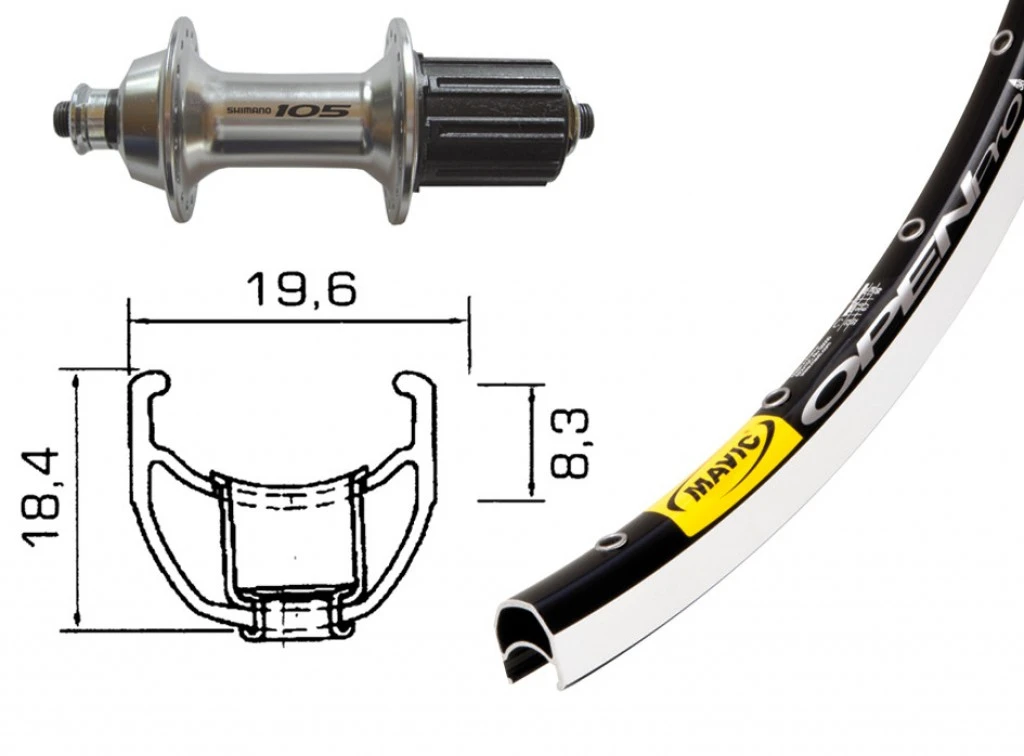 Mavic Open pro baghjul med Shimano 105 nav (FH-5600).