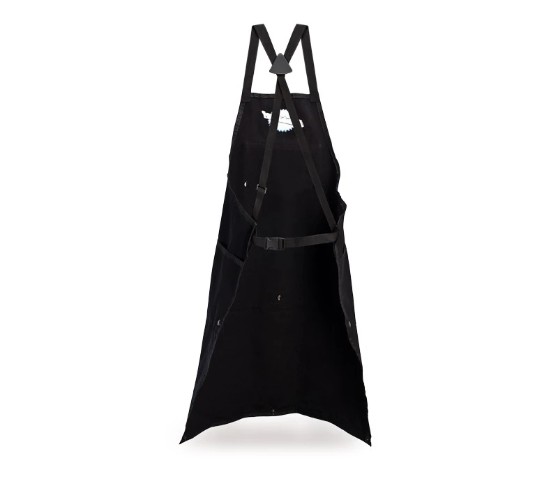 Forklædet kan med trykknapper foldes op til en kortere længde.