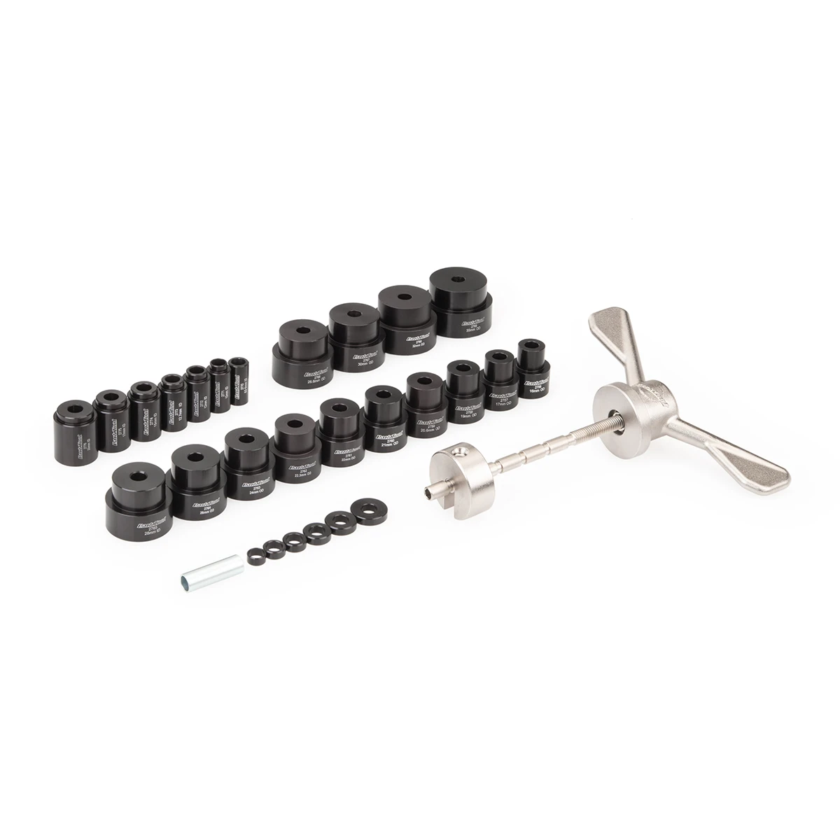 SBK-1 er et professionelt lejepresse sæt til montering og afmontering af lejer i cykelophæng.