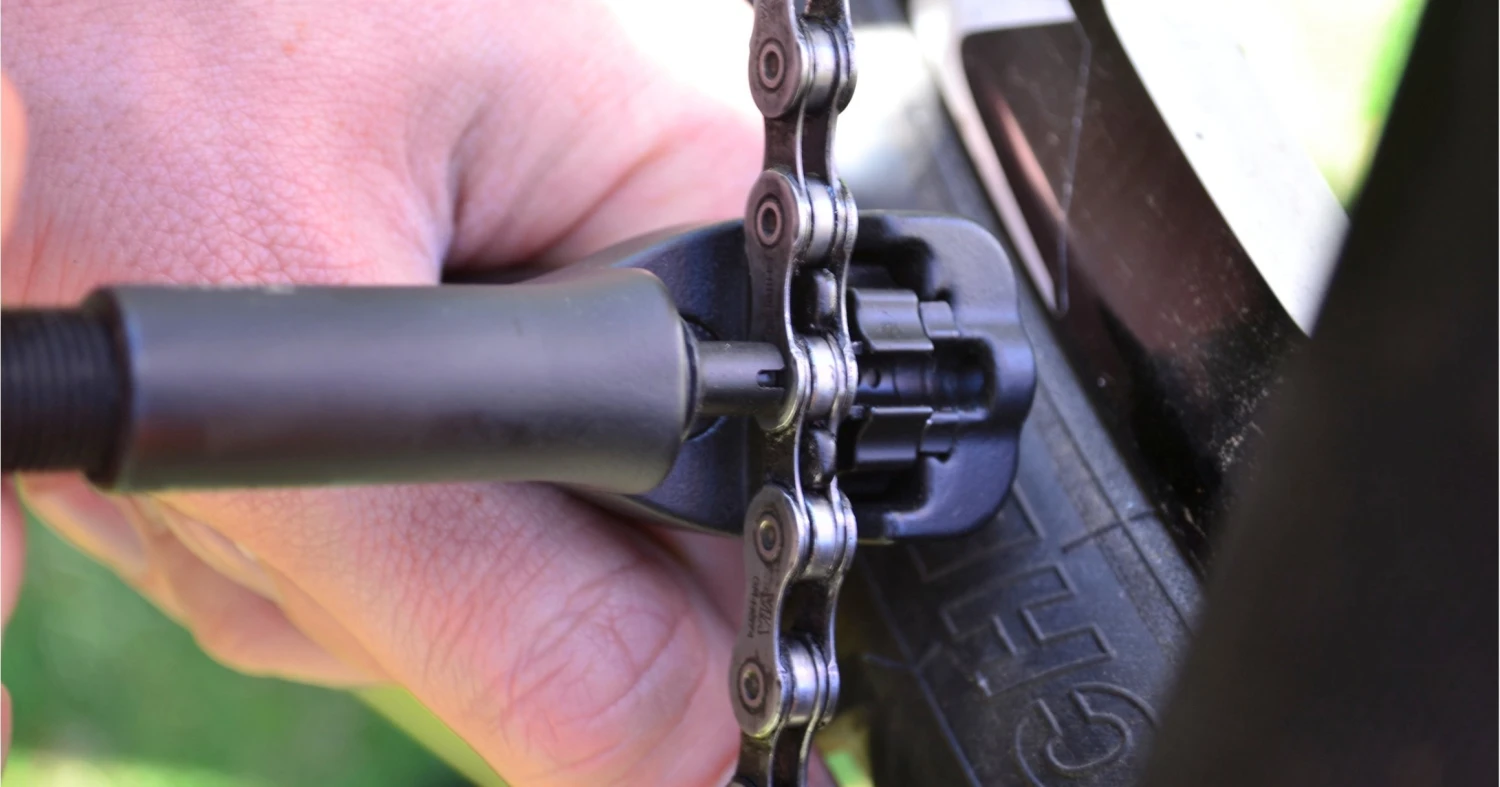 Stiften der skal trykke kæden fra hinanden har en fjederpåvirket guide, så du ikke får trykket stiften skæv og så den ikke knækker, når du bruger den. Det sikrer også, du ikke får et vrid i din kæde, og den dermed også holder længere tid.