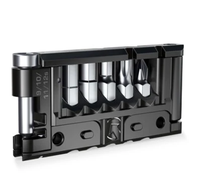 Ekstremt kompakt multiværktøj fra PRO. Takket være det smarte design er der alle de Torx, flad skruetrækker og Unbrakonøgler du får brug for, et kædeværktøj samt et ekstra kædeled. Modellen kan monteres direkte på den smarte flaskeholder som du finder her