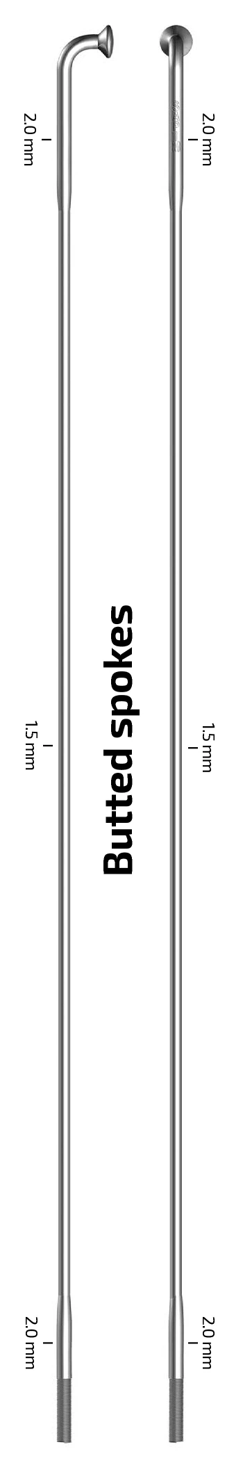 Sapim Laser er en strukket eger på 1.5 mm i midten og 2 mm ved niplen.