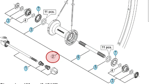 Komplet akselsæt på 108 mm. til WH-RS11-F nav.
