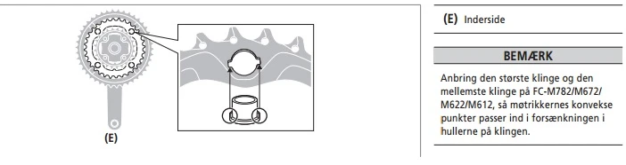 Bemærk at møtrik-delen har to konvekse punkter, der passer til forsænkningen på klingerne på versioner af ovenstående kranksæt. Vælg kun disse klingebolte, hvis de passer til klingerne.