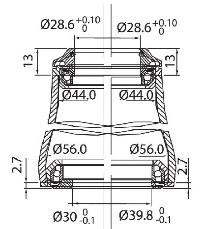 Øverste skål Ø:44 x 50mm for 1-1/8”.