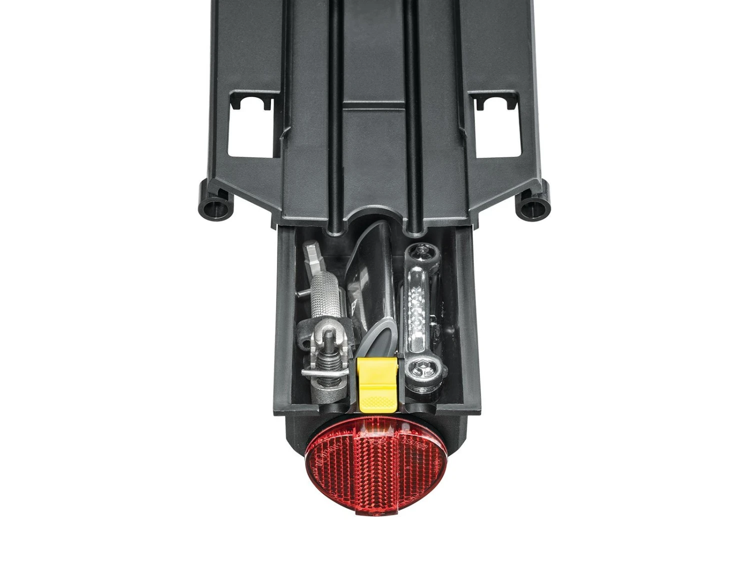 Der medfølger elastikstropper, rød refleks og skjult skuffe til opbevaring af eksempelvis værktøj eller andre smådele.Passer på alle sadelpinde med en diameter op mellem 25,4 – 31,8 mm.