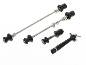 Quick release sæt med åbning der kun kan åbnes med den speciel-nøgle der medfølger og på den måde beskytter hjulene mod tyveri.